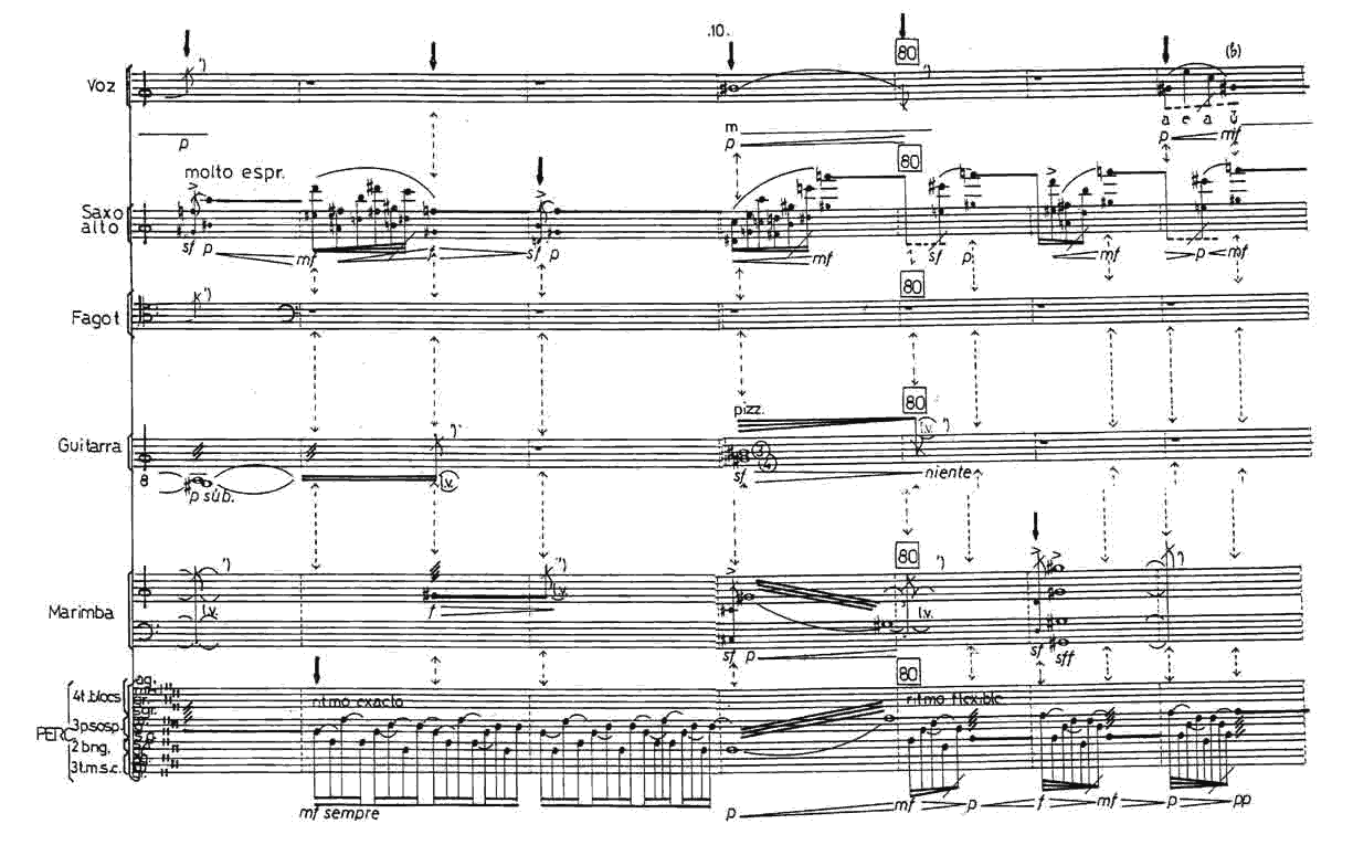 b) Buenos Aires, 1994. c) Voix féminine non lyrique, saxo alto, basson, guitare ou guitare éléctrique, marimba et 1 percussioniste. e) 10. min. ca.